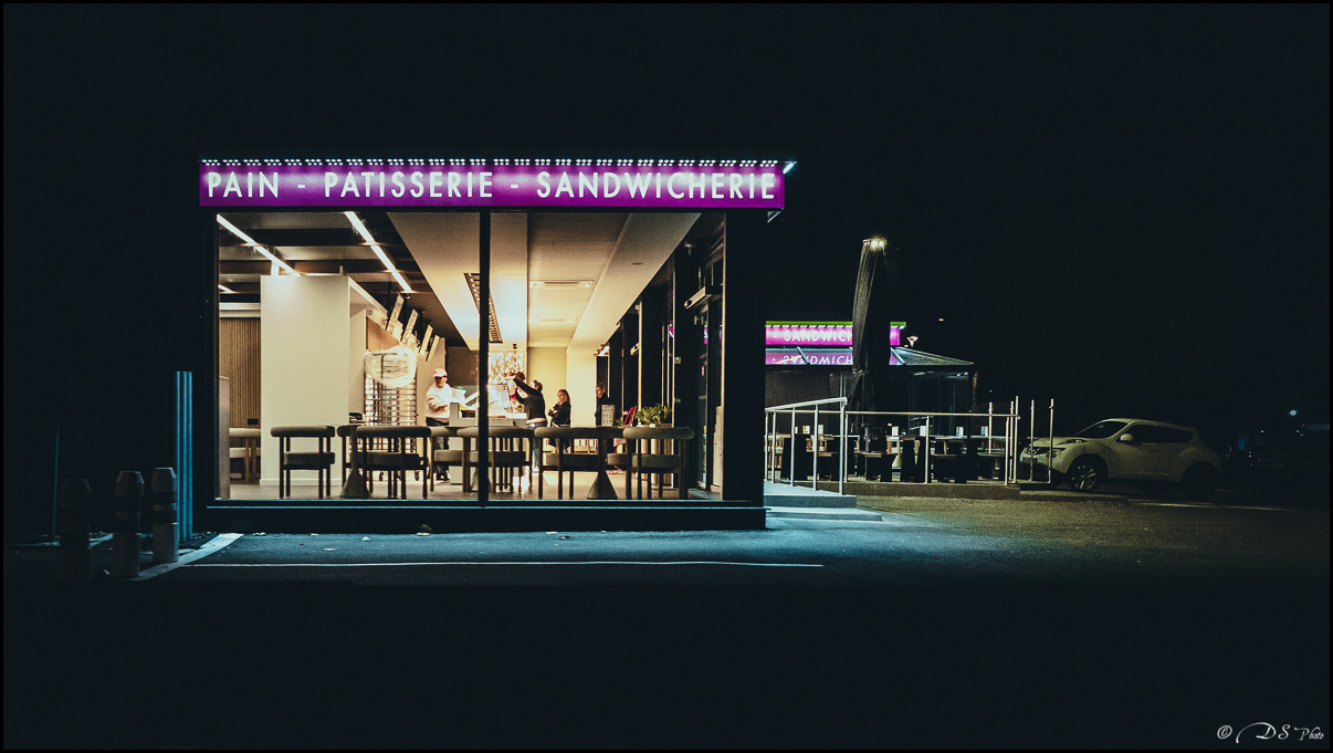 Post navigation ← Précédent « Boulangerie by night » Publié le 30 novembre 2025 par distancesfocales Bonjour, « Boulangerie by night » A la manière de… Edward Hopper. Tarbes, rue Gagarine, novembre 2025. Facebook 0 Twitter 0 Google+0